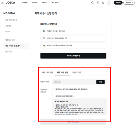 잡다 역량검사 서울시 무료 인증코드 사용하기