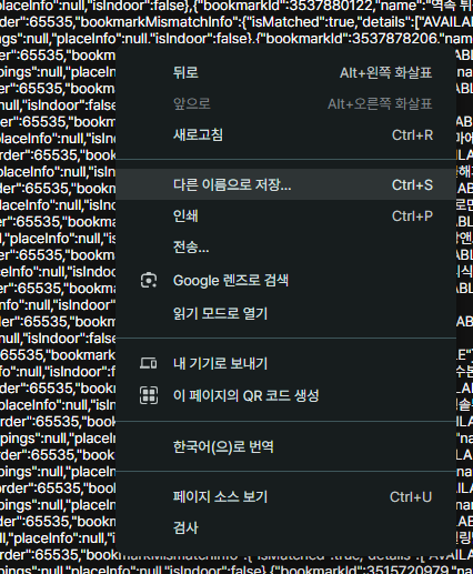 그러면 해당 list 내의 장소들이 적혀있는 json 파일이 나온다.