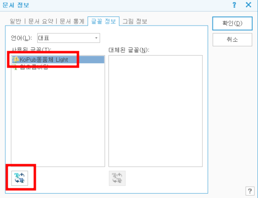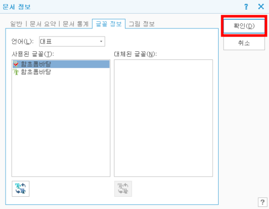 내가 바꿔야 하는 폰트를 선택한 후 아래의 버튼 (사용된 글꼴 바꾸기) 클릭